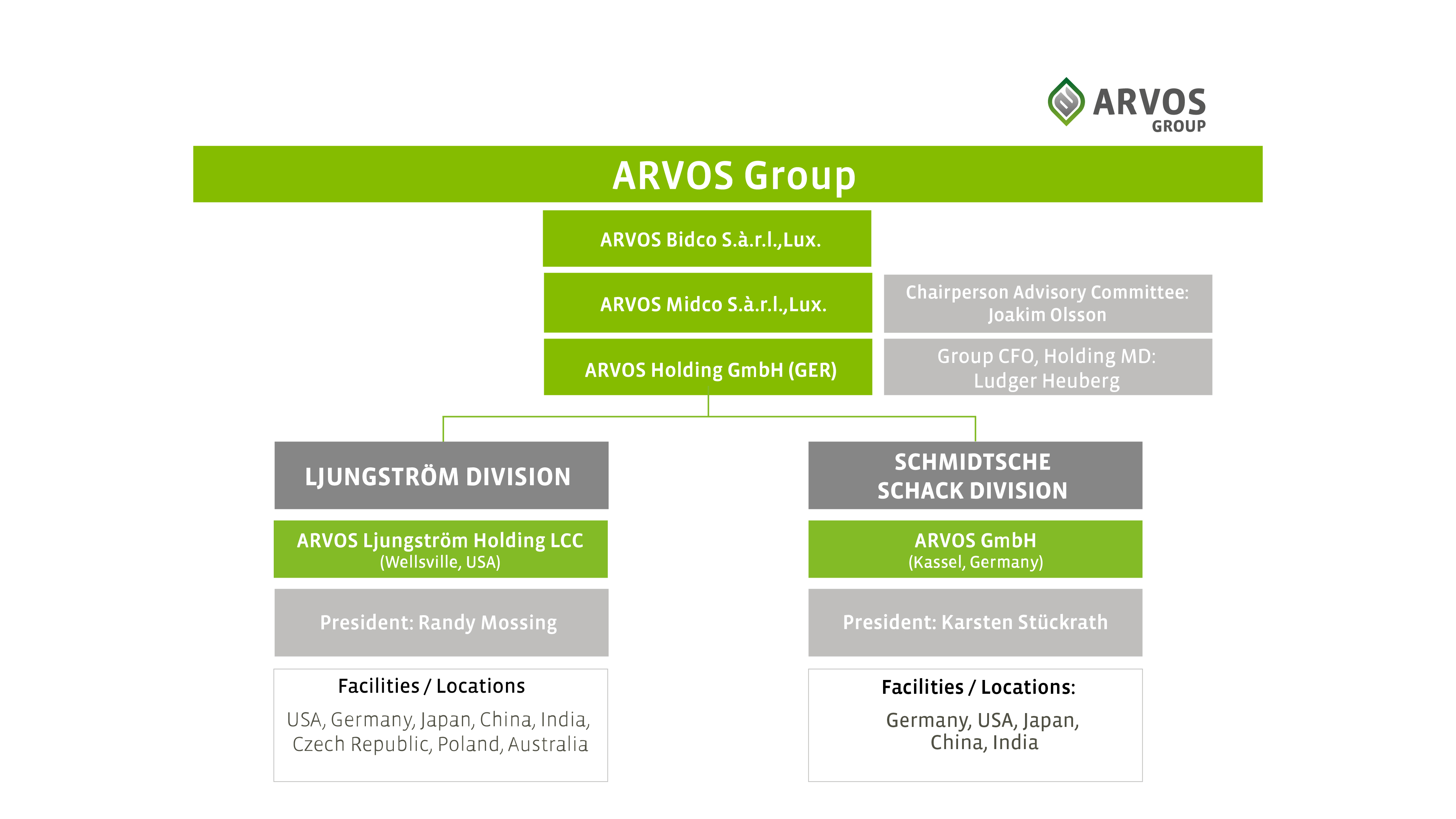 Headquartered in Luxembourg, with the German holding company and the corporate offices in Heidelberg, ARVOS Group operates six global manufacturing facilities and has sales execution offices in Australia, China, Czech Republic, Germany, India, Japan, Poland and the USA. The ARVOS Group brands of LJUNGSTRÖM®, SCHMIDT’SCHE ® and SCHACK® are highly recognized for representing outstanding quality and performance. ARVOS Group, owned by funds advised by Triton, has more than 1,000 employees worldwide.